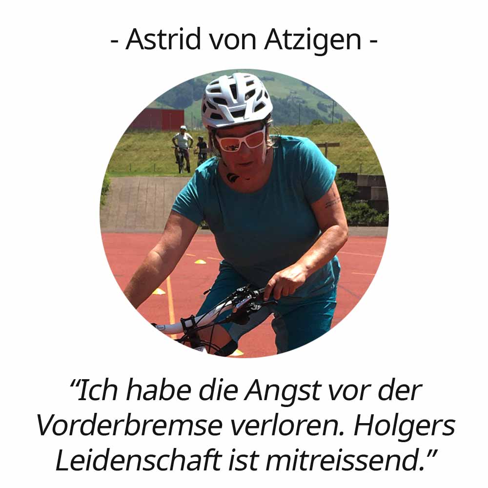 Egal ob auf rutschigem Schotter, Wurzeln oder feuchter Wiese: Nach diesem Kurs fühlst du dich in jeder Abfahrt stabil, ruhig und sicher. Und du wirst überrascht sein, wie viel Spaß bergabfahren plötzlich macht, wenn dein Körper unterbewusst genau das richtige tut.
